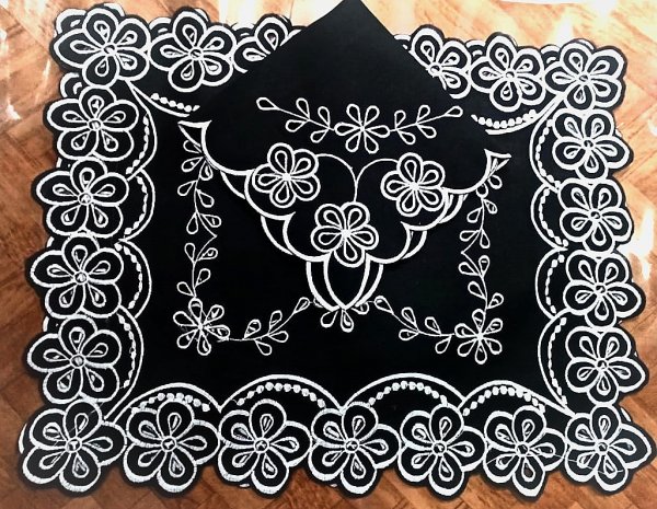 Jogo Americano Retangular em Richilieu com guardanapo.