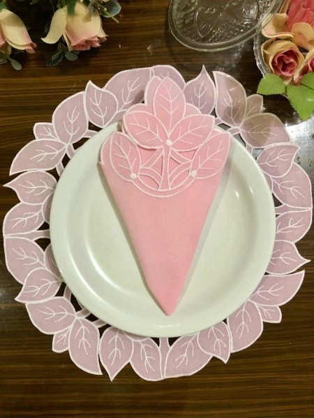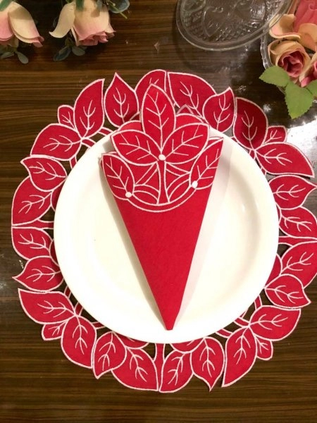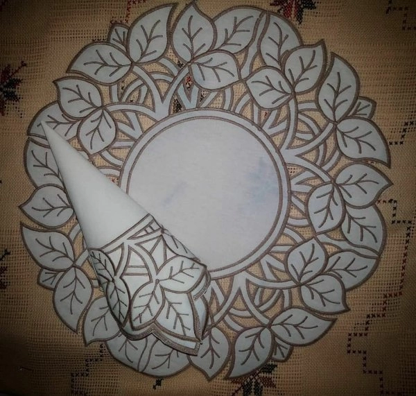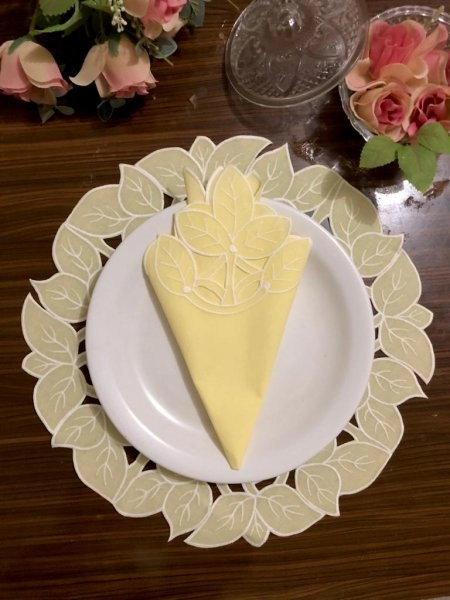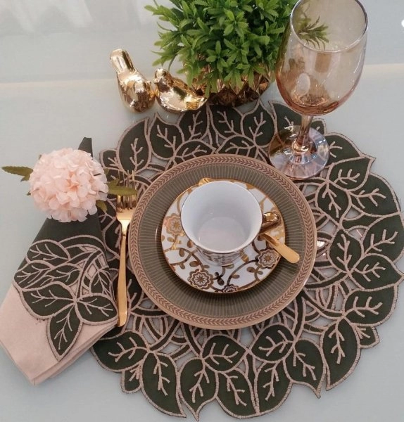 Kit com 6 Jogo Americano Redondo com Guardanapo em Richelieu Folha Euro
