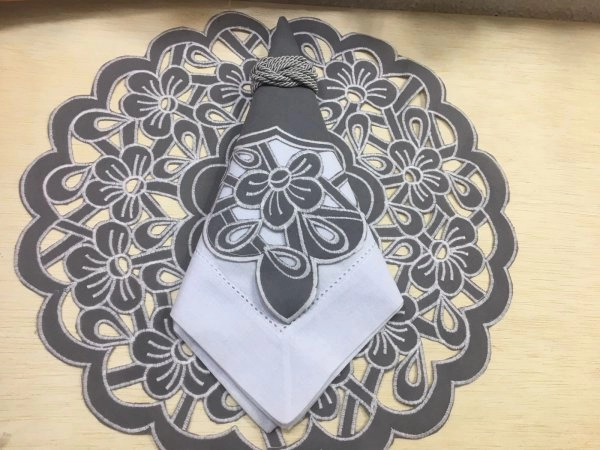 Kit para 6 luagres Jogo Americano em Richelieu redondo com guardanapo Flor de primavera