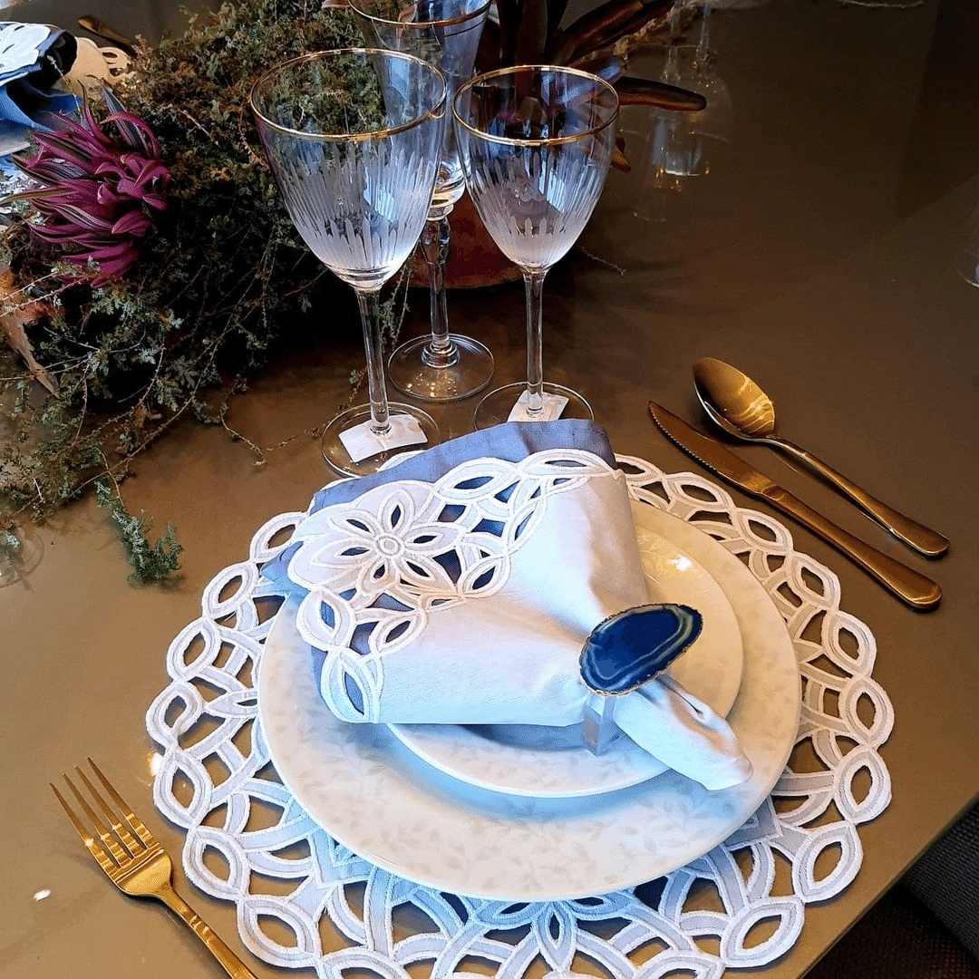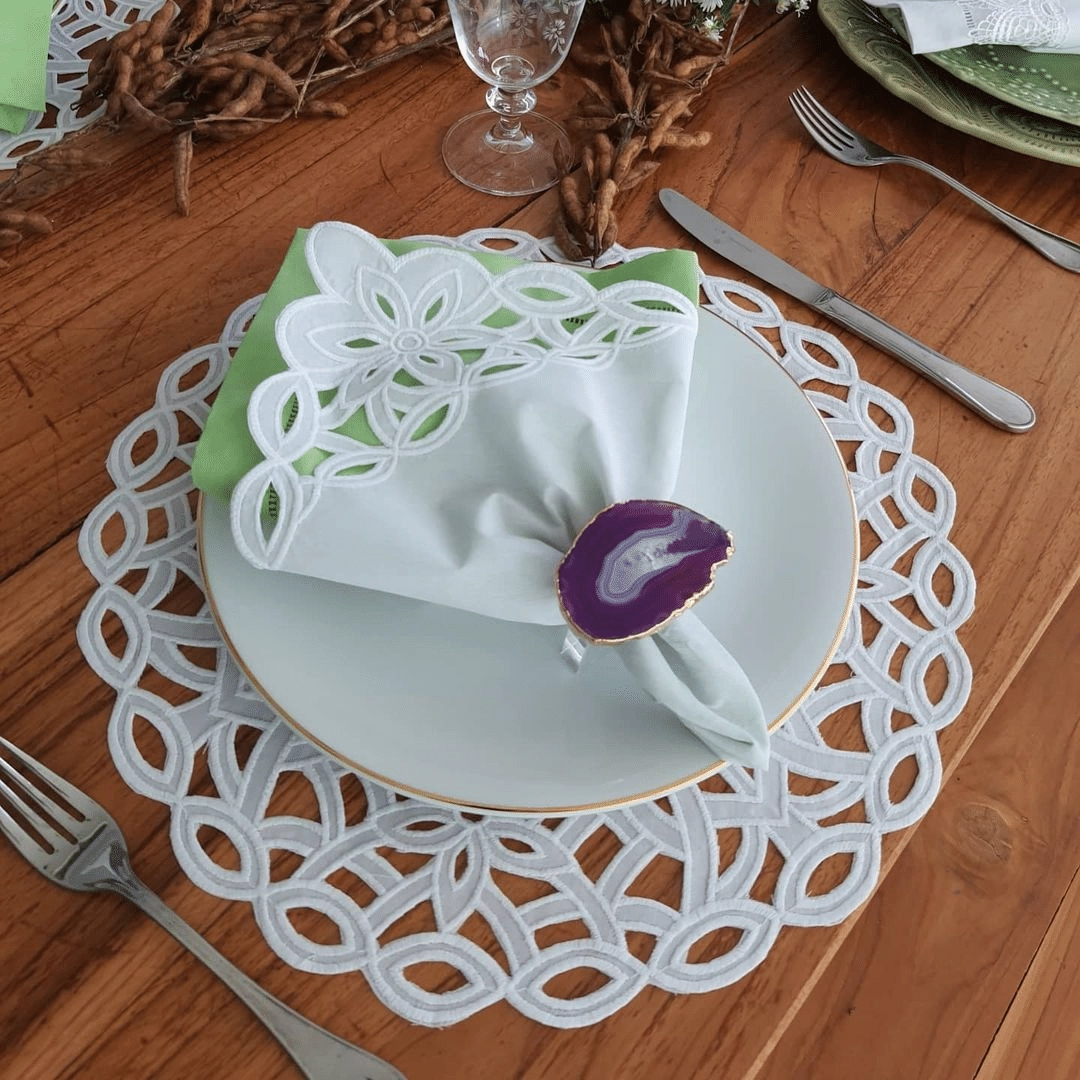 Kit Jogo Americano redondo com Guardanapo em Richelieu