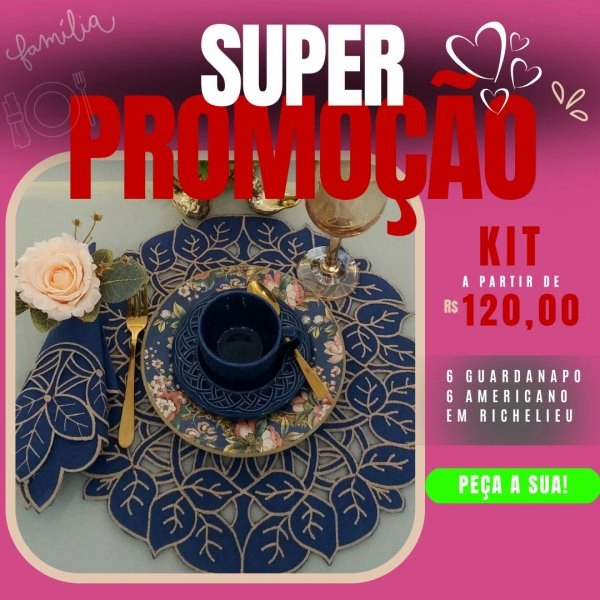 KIT: Jogo Americano em Richelieu com Guardanapo.