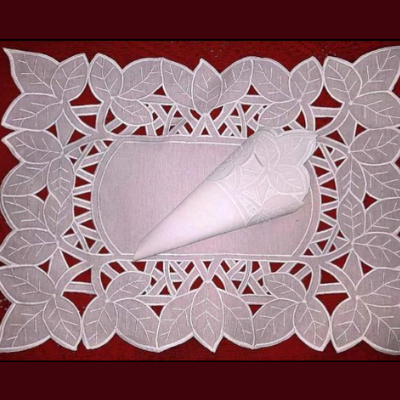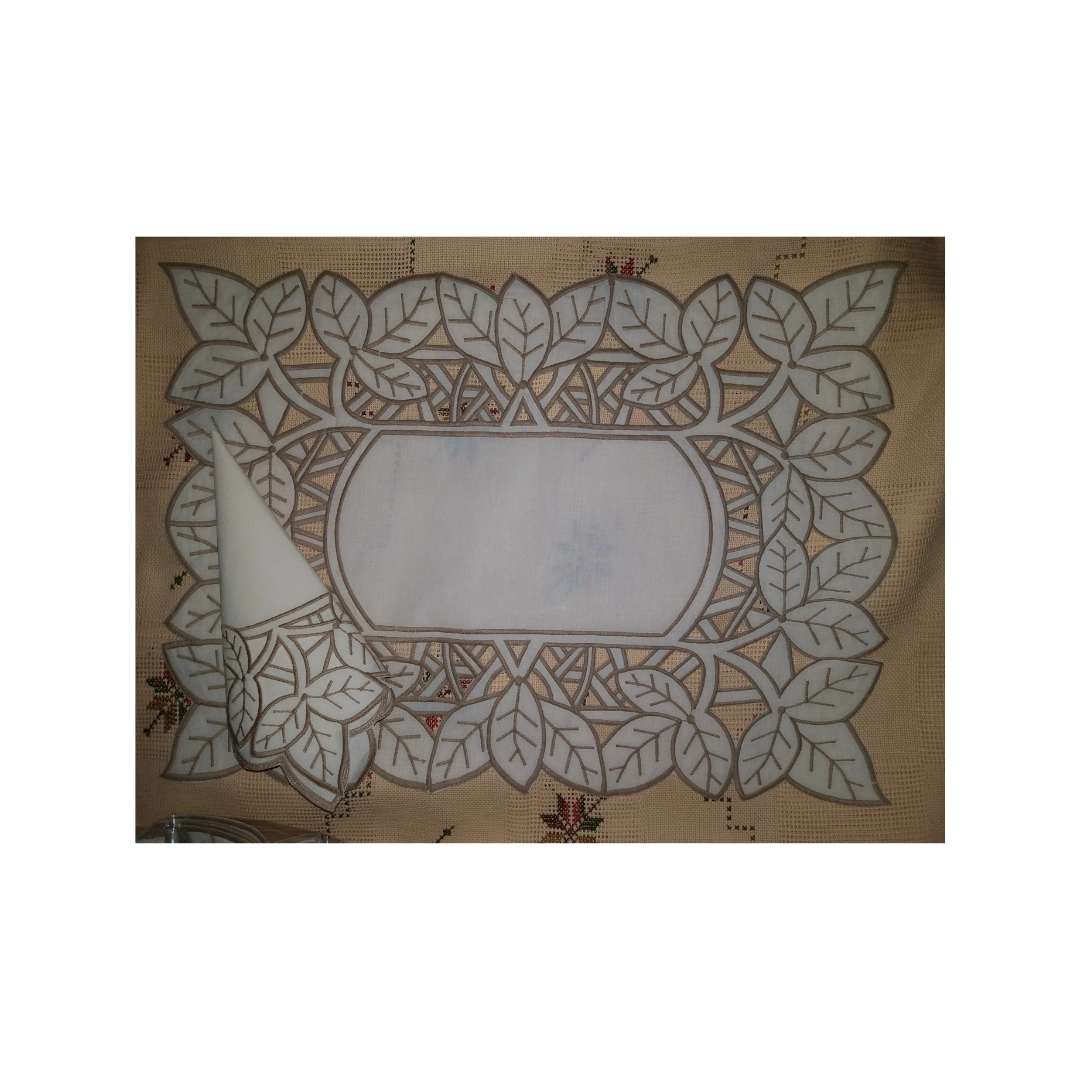 Kit para 6 lugares JogoAmericano Folhagem Retangular em Richelieu com guardanapo Kit acompanha: 6 Americanos retangular em Richelieu 6 Guardanapo em Richelieu