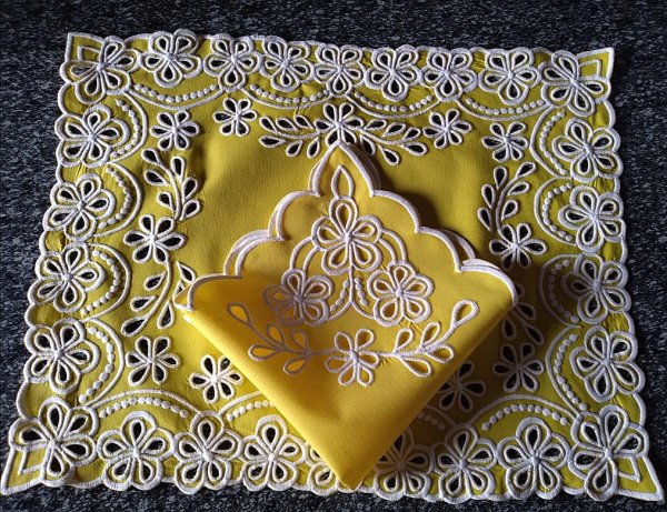Jogo Americano Retangular em Richilieu com guardanapo.