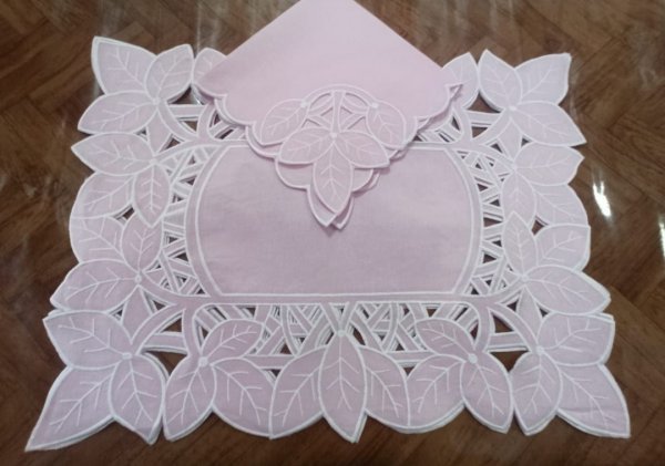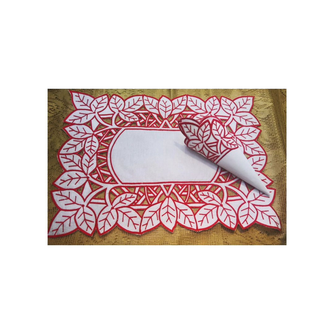 Kit para 6 lugares JogoAmericano Folhagem Retangular em Richelieu com guardanapo Kit acompanha: 6 Americanos retangular em Richelieu 6 Guardanapo em Richelieu